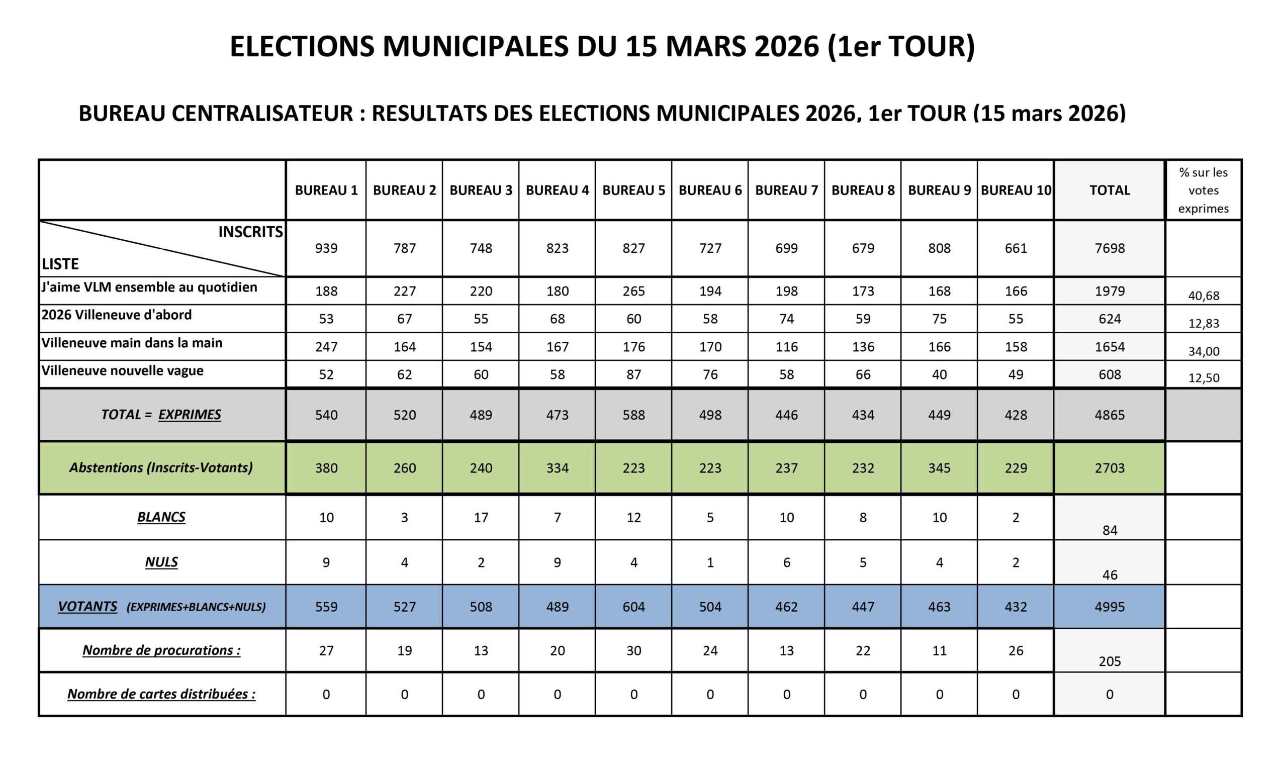 ► Retrouvez ci-dessous les résultats du premier tour des élections municipales 2026 pour la Commune de Villeneuve-lès-Maguelone :
