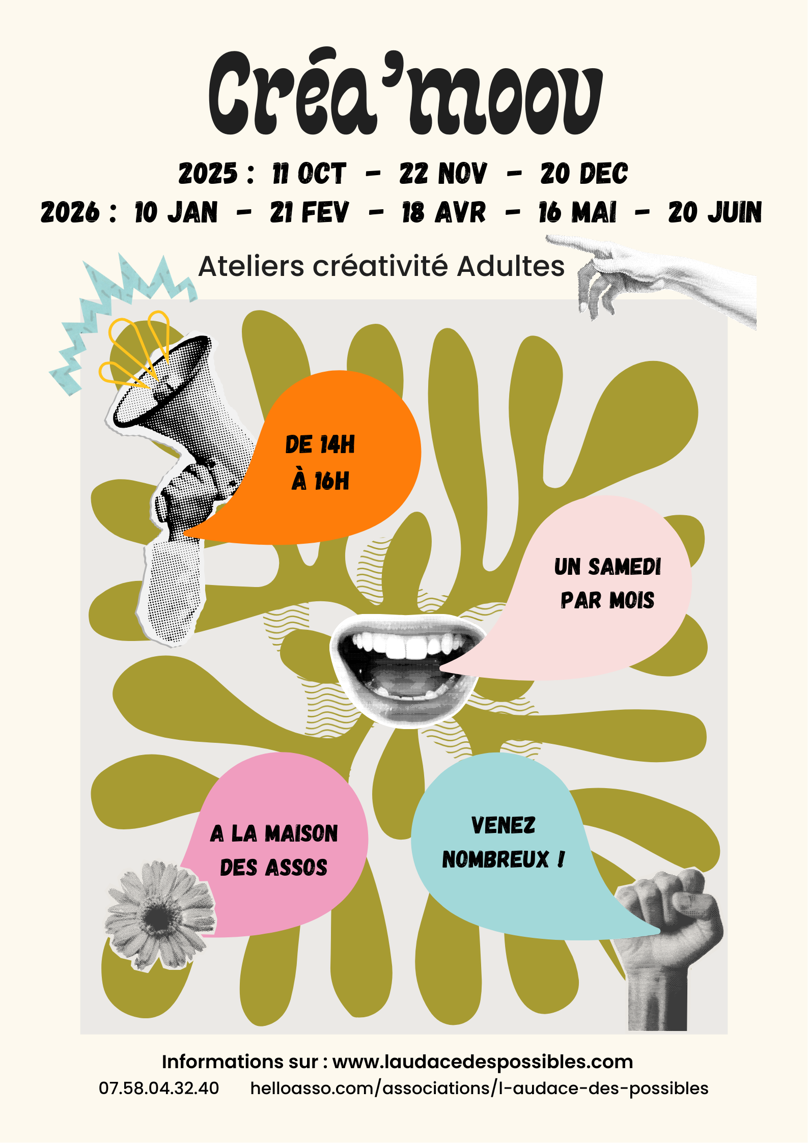 Rendez-vous mensuels Créa’moov – ateliers créativité pour adultes à la Maison des Associations.